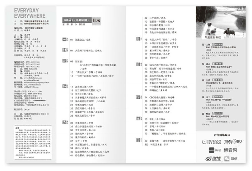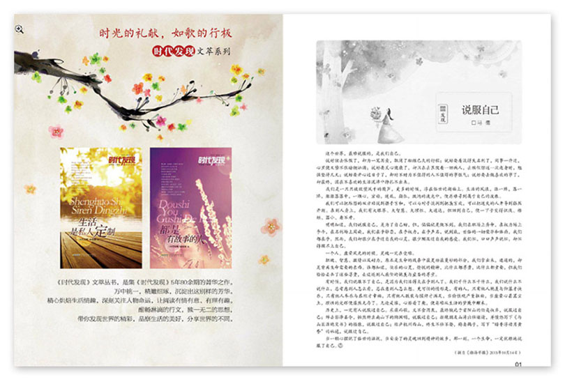 该杂志内容紧扣“时代”和“发现”两大关键词做文章,坚守自然发现,历史解读,文化探索、人文精神,力求站在“时代”的高度,凸显当下性和时代风;呈现“发现”的广度和深度(新、奇、特);以探索的视角吸引阅读,以智慧的力量引领生活,以人性的温暖感号心灵,以优美的文本亲近读者,追求“清爽、清亮、清白、轻松”的风格,坚持以“快乐发现、品鉴生活、涵养心灵”为阅读的最终价值取向,共享新的时代,新的发现,新的生活,新的知识。